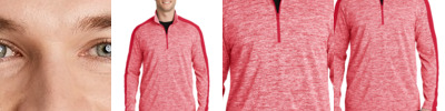 By mixing heather with a solid color and adding reflective hits, this moisture-wicking pullover has a technical look plus plenty of stretch for easy movement.