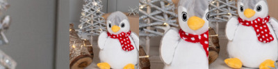 Soft plush grey and white penguin with contrast knitted scarf. Sewn eyes. Contrast feet and beak. White coloured panel on tummy perfect for decoration. Zip access on base for direct access onto the tummy for embroidery or print. Removable inner stuffing. Can be embroidered, printed and sublimation printed. Complies with EN71 European Toy Safety regulations. Remove all hang tags and their fasteners before giving these items to a child. Suitable for all ages. BSCI certified. SEDEX certified.