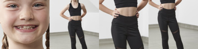 89% nylon/11% elastane. Seamless knit. Racer back style. Self fabric bound neckline, armholes and racer back. Self fabric mesh used for front straps, V insert and back panel. Removable padded cups (age 11-13 only). Ribbed hem. Tear out label.