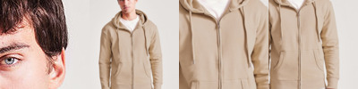 Shaped to fit. 320gsm. Peached fabric, soft-feel finish. Waffle knit hood. High polished, nickel free eyelets, zip and drawcord ends. Polyester dyed to match tubular drawcord. Concealed zip. Brushed fleece inner. Twin-needling detailing creates a high quality finish. Cut and sew two by one ribbed cuffs and hem. Kangaroo pouch pocket. Self-coloured neck size label.