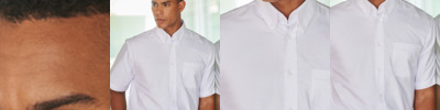 77% cotton/23% polyester. Wrinkle resistant fabric. Classic fit. Button down collar. Left chest pocket. Pearlised buttons. Back yoke with centre pleat. Curved hem. Available in long sleeve H510.