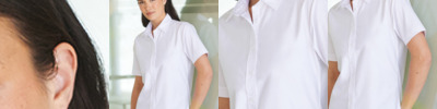 77% cotton/23% polyester. Wrinkle resistant fabric. Tailored fit. Shaped side seams. Pearlised buttons. Curved hem. Available in long sleeve H511.