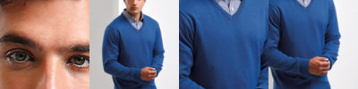 55% cotton/45% acrylic. Fine knit. Soft feel and contemporary styling. Set in sleeves. Machine washable at 40°C.