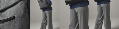 - Self-material main body set-in mitered V-neck with bar tack reinforcement