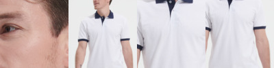 100% ringspun combed cotton. Contrast collar, cuffs and inner placket. Taped neck. Two button placket. Contrast taped side vents. Twin needle hem.