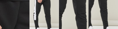 100% polyester interlock. Slim leg. Elasticated waistband with inner drawcord. Two side zip pockets. Contrast side panels (black and navy are self colour). Ankle zips with zip guard and semi-automatic lock zip sliders. Tear out label.
