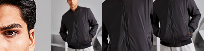 Tonal fashion coil zip on centre front with signature zip puller. Insulated body and sleeves. 100gsm lightweight polyester fill. Fully-lined in tonal polyester. Bomber style collar. Welt pockets with rubberised stud opening, striped grosgrain trim with rectangular eyelet. Tonal elasticated cuffs and hem. Internal double jet zipped pocket. Internal zipped opening for embroidery access. Product contains no branded neck label.* Removable Kimble or looped garment tags. Inner seam label holds important product information on one label with a second label containing brand information which can be cut-away.
