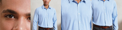 Long sleeve denim shirt with contrast stitch detail with left breast pocket. Buttoned cuff and sleeve guard. Curved hem. Back yoke.