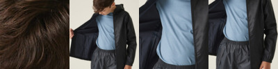 Fabric information - Waterproof Hydrafort 5000 polyester fabric. Windproof fabric. Taped seams. Special features - Jacket integral hood. Elasticated cuffs. 2 lower pockets. Reflective trim detail at back hem.