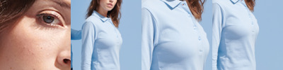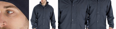 - Clean finished reversed placket with reinforced bottom box