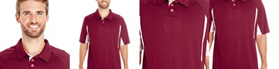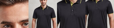 100% polyester inserts; 100% polyester textured stripe; 100% polyester Dry-Excel™; horizontal, textured stripe with high mechanical stretch; snag resistant technology; raglan sleeves for maximum mobility; self-fabric collar; three button placket;