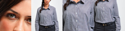 Stand up button down collar. Wrinkle free taping to seams. Rounded hem, back yoke, two darts to back panel. Two button notched cuff with one button pointed placket. Double stitched sleeves and side seams. Spare buttons. Kustom Kit® woven back neck label. SEDEX certified. Oeko-Tex certified.