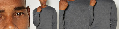 80% organic cotton/20% recycled PET french terry. Black and white 80% organic cotton/20% recycled polyester french terry. Heather marl 85% organic cotton/8% recycled polyester french terry /7% viscose. Organic or in-conversion to organic cotton. Loose fit. Raglan sleeves. Wide, off the shoulder raw edge neckline. 3/4 length roll-up sleeves. Straight open hem. Tear out label.