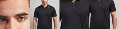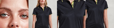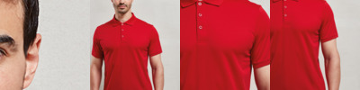 100% polyester micro piqué. Easy care, moisture wicking fabric. Ribbed collar and cuffs. Three self colour button placket. Panelled detail for more fitted shape. Side vents. Twin needle hem.