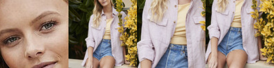 Contrast tipped details on collar, placket, arm cuffs and side vents. Side panels for a fitted shape. Bust and back darts. Three button placket.