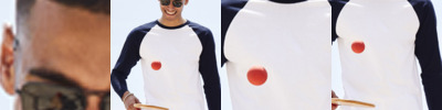 100% cotton. Cotton/Lycra® contrast ribbed collar.Contrast raglan sleeves.Twin needle stitching.Cut out label.