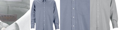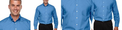 3.4 oz., 55% cotton, 45% polyester broadcloth; true non-iron performance straight from the dryer; stain release finish; fine yarn count shirting with pearlized buttons; patented pucker-free taped seams; specially fused collar, cuffs and placket; split back seam with bias cut back yoke; classic fit for professional appearance; rolled button-down collar; adjustable "Comfort Collar" gives up to an inch stretch at neck; left-chest pocket;