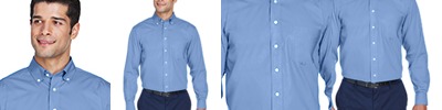 4.1 oz., 60% cotton, 40% polyester; fine yarn count shirting; true Non-iron performance straight from the dryer; stain release finish; Classic Fit for professional appearance; pearlized buttons; patented pucker-free taped seams; specially fused collar, cuffs and placket; split back seam with bias cut back yoke; rolled button-down collar; adjustable "Comfort Collar" for up to an inch of stretch at neck; left-chest pocket;