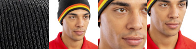 Windproof. 6 gauge dense knit. Stripe knit. Solid colour inner. Cold weather protection. Extremely warm. Stand out national colourways. Team colour trend. Decoration Guidelines: Decorating methods: Embroidery. Decorators access point: Open.