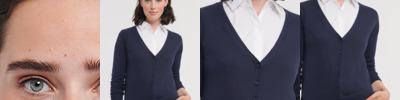 50% cotton/50% acrylic CottonBlend™. Set in sleeves.Self colour buttons.1x1 ribbed trim with elastane at cuffs and hem.Machine washable at 40°C.