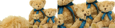 - Light brown coloured bean filled bear with blue tartan ribbon.