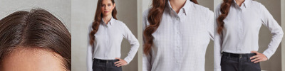 Yarn dyed fabric creating a gingham pattern. Long sleeve with single button cuff and sleeve guard. Narrow soft collar with button down options on the underside. Semi fitted. Easycare fabric.