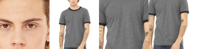 4.3-ounce, 60/40 combed ring spun cotton/poly, 32 singles CVC blend 1x1 rib knit neck Shoulder to shoulder taping Tear-away label Side seamed