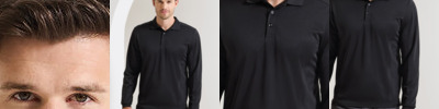 A men’s long sleeve polo shirt with panelled detail for a more fitted shape. A stylish knit collar and three button placket to the neckline make for a modern piece of workwear which acts as a smart alternative to a shirt. The sleeves are finished with a 5cm ribbed cuff.