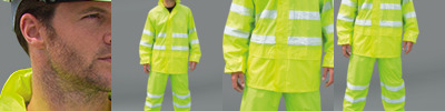 100% polyester PVC coating. StormDri waterproof 2000mm with taped seams.Windproof.Jacket has full length heavy duty zip with studded storm flap.Integral drawcord hood.Mesh ventilation panel on back.Two front pockets with storm flaps.Elasticated cuffs.Reflective bands around the body and sleeves.Trousers have an elasticated waistband.Side access pockets.Reflective leg bands.Comes in self coloured carry bag.Cut out label.