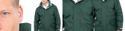 190T polyester pongee StormDri 2000 PU coating. Quilted polyester lining.Waterproof 6000mm with taped seams.Windproof.Concealed adjustable hood.Full length zip with tear release storm flap.Inner pocket.Two front pockets with storm flaps and fleece lining.Inner elasticated cuffs and reflective cuff detail.Adjustable drawcord hem.Cut out label.Access for decoration.
