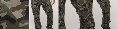 - Two hex style pockets with center pleat, button flaps and left pencil pocket