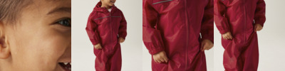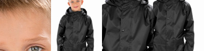 100% polyester with PVC inner coating. Waterproof 2000mm with taped seams.Windproof.Concealed hood.Full length zip with studded storm flap.Two front pockets.Mesh ventilation panel on back.Inner elasticated cuffs.Adjustable drawcord at hem - EN14682 compliant.Cut out label.