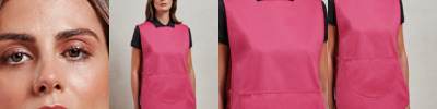 65% polyester/35% cotton twill. Easy care fabric.Large patch pocket.Adjustable stud side tabs.Self colour bound edges.Length 68cm.Industrial laundry 85°C.Domestic wash 60°C.