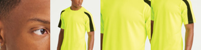 Neoterictm textured fabric with inherent wickability. UPF 30+ UV protection. Self fabric collar. Self fabric taped back neck. Raglan sleeves. Contrast inserts on front and back of sleeves.
