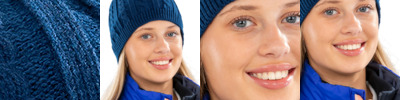 100% acrylic outer with polyester lining. Windproof.Chunky cable knit.Ribbed hem.