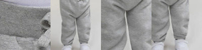 Heather grey 75% ringspun cotton/25% polyester. Soft cotton faced fabric.Brushed back fleece.1x1 ribbed waistband.No drawcords to comply with EU regulations.Two side pockets.Cuffed leg ends.Tear out label.