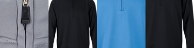 100% polyester single jersey. Wicking finish.Contrast zip neck with stand up collar.Contrast shoulder, upperarm and side panels.Concealed right zip pocket.Contrast stretch bound cuffs and hem.Tear out label.
