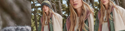 85% polyester/15% nylon outer.80% acrylic/20% polyester faux fur trim.Soft peach finish.Showerproof.Snap close fastening.Mesh eyelets for sound allowance.