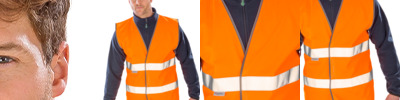 100% polyester. Conforms to EN ISO 20471: 2013 + A1: 2019 class 2.Grey polyester bound edges.Tear release front closure.3M™ reflective bands around the body.Generous in size allowing to be worn as an over garment.