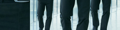 65% polyester/35% cotton twill. Straight leg.Flat front.Belt loops.Zip fly with button over.Two side pockets.Rear pockets with button closure.