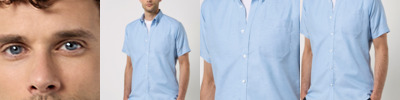 70% cotton/30% polyester. Fused stand up button down collar.Left chest pocket.Single needle stitched armholes.Back yoke.Darted back panel.Twin needle sleeves and side seams.Curved hem.50°C wash.