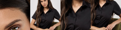 65% polyester/35% cotton. Easy iron fabric.Soft fused stand up collar.Self colour buttons.Back yoke.Bust and back darts.Single needle stitched armholes.Twin needle sleeves and side seams.Curved hem.