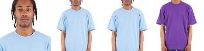 7.5 oz., 100% USA cotton, 16 singles; Heather Grey is 90% USA cotton/10% polyester; Charcoal Grey is 50% USA cotton/50% polyester; 3.5% lycra neck rib; Shoulder-to-shoulder neck tape and double-needle stitched neck; 1" double-needle stitched sleeve and bottome hems; 1" stretch-proof neck collar with satin/woven label; Heavy-duty knitting; Forward-thrusted shoulder seam for comfortable neck fit; Oversized/Relaxed with slight drop shoulder streetwear fit; Quarter-turned to eliminate center crease;
