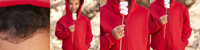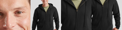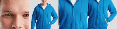 80% cotton/20% polyester. Drop shoulder style.Double fabric hood.Taped neck.Narrow full length covered zip.Front pouch pockets.Cotton/Lycra® ribbed cuffs and hem.Twin needle stitching.Cut out label.