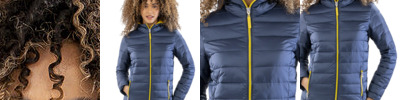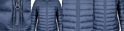 Fashionable quilted design. Contemporary fit. Super air-soft handle with hand filled polyester fibre. Uniquely light for such a padded garment. Quiet to wear. Super lightweight and warm. Easy to pack, compact stowage.