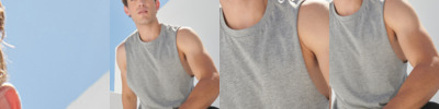 60% cotton/40% polyester.* Single jersey.Stretch ribbed neckline.Raw edge armholes and hem.Side seams.Tear out label.