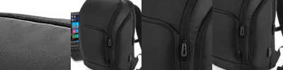 600D micro ripstop polyester. Padded adjustable shoulder straps.Ergonomic padded back panel.Main zip compartment.Internal valuables zip pocket.Internal organiser section.Plush lined laptop pocket.External access padded laptop compartment compatible up to 15.6".Elasticated cable organiser.Side zip pockets.Key clip.Lockable zip pullers.Tear out label.Capacity 16 litres.
