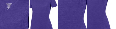 100% polyester heathered wicking knit ; Wicks moisture away from the body ; Ladies' fit ; Pad print label ; Self-fabric V-neck collar ; Set-in sleeves ; Double-needle hemmed bottom and sleeves.;