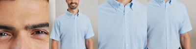 70% cotton/30% polyester. Easy care fabric.Semi-fitted styling.Wrinkle resistant finish.Button down collar.Left chest mitred pocket.Back yoke with two pleats.Curved hem.Easy cut out neck label.
