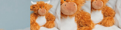 Soft plush Zippie highland cow with contrast nose and horns. Sewn eyes and mouth. White panel on tummy is perfect for decoration. Zip access on base for direct access onto the tummy for decoration. Removable inner stuffing. Can be embroidered, vinyl, and sublimation printed. Complies with EN71 European Toy Safety regulations. Remove all hang tags and their fasteners before giving these items to a child. Suitable for all ages.